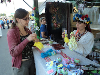 Майстер-клас із виготовлення традиційної тканинної ляльки-мотанки під час Сорочинського ярмарку 2012 року